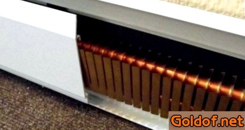 Теплый плинтус является закрытую дюралевую планку с нагревательным элементом высотой от пола четырнадцать см и шириной три сантиметра. Термоплинтусы отличаются между собой по размерам: размер сечение создает 10 — 20 четыре сантиметра, цвету и форме. Конструктивно такая система складывается из греющих теплообменных модулей, какие являются две трубы из меди, какие имеют оребрение из бронзы, с насаженными ламелями на их и закрытые разборным коробом из алюминия.