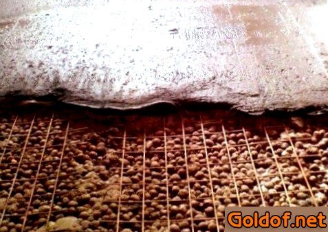 - Приготовленный керамзит можно засыпать. Его умеренно распределяют и просто утрамбовывают. Уровень засыпки испытывает недостатков в неизменном контроле, чтобы избежать уклонов. После чего будет нужно пропитать подсыпку веществом из водянистого цемента. Такое «цементное молочко» даст стойкость слою теплоизолятора и разрешит ему оставаться в изначальном положении при грядущей заливке. Армирующий слой из стальной сетки станет последним этапом на данной стадии.