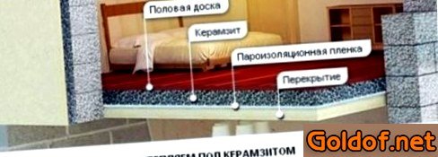 - Против керамзита может сыграть к тому же толщина пола нижнего этажа, так как для организации качественного слоя термоизоляции будет нужно большой припас по высоте. Мало рекомендуемый слой подсыпки – 20 см, а хорошим считается 40 см. И опять же не надо забывать прибавить высоту стяжки.