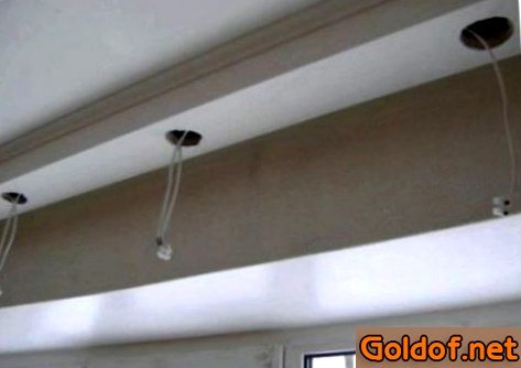 О том, как закрепить гипсокартонный короб, детально описано в аннотации по установке потолка из гипсокартона. Независимо от площади комнаты применяйте подвесы, так как одна сторона короба подлежит фиксации к потолку или стене, а 2-ая – только к потолку. Вооружившись уровнем, отрегулируйте высоту установки подвесов и зафиксируйте их в одном положении. между основанием потолка и гипсокартонным коробом покиньте малозначительное место для крепления натяжной конструкции. На данный момент следует найти в памяти об проводке – Для вас следует вывести кабель на участках будущего крепления источников освещения. Завершив установку короба, с помощью электронной дрели со особенной насадкой, сделайте пара отверстий под точечные осветительные приборы.