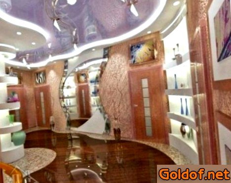 Криволинейное соединение. Потолочные конструкции на основе криволинейного соединения разрешают зонировать те помещения, где исключена возможность сотворения особенных перегородок и подиумов. Благодаря плавным линиям и очертаниям, можно взять видный, запоминающийся интерьер, располагающий к отдыху и расслаблению.