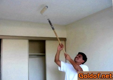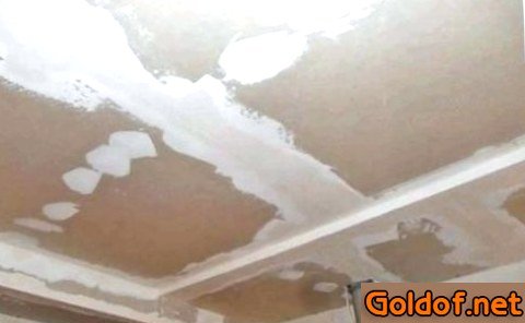 - Приготовить поверхность потолка. Главное требование всех ремонта – как надо приготовленная поверхность. Оклейка потолка стеклохолстом востребует не наименьшей тщательности в этом вопросе. Удаления потребуют каждые остатки старого покрытия: краска, обои, побелка, штукатурка. Некоторые специалисты демонстрируют на такую «лазейку»: можно клеить паутинку на побеленный известковым веществом потолок, в случае если имеется уверенность в том, что по окончании грунтования было нанесено три или меньше слоев извести. Но надежнее все таки перестраховаться и счистить ее шпателем, а после чего размыть тряпкой, обильно смачивая ее водой. В протяжении чистки безизбежно будут создаваться выбоины. Они должны быть загрунтованы и зашпатлеваны. По сути наилучшим решением будет зашпатлевать всю площадь потолка.