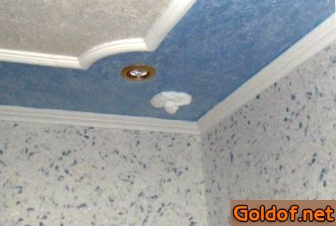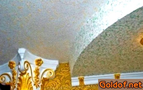Финальная отделка потолка производится различными материалами. В жилых и офисных помещениях все чаще стали использовать жидкие обои.