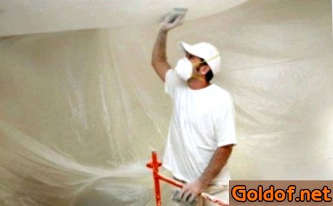 Перед тем как приступить к работам понадобится вызволить помещение от мебели, снять картины и шторы. Необходимо убрать осветительные устройства с потолка, вместе с этим концы проводов в обязательном порядке заизолировать. Пол в комнате необходимо застелить газетами или полиэтиленом.