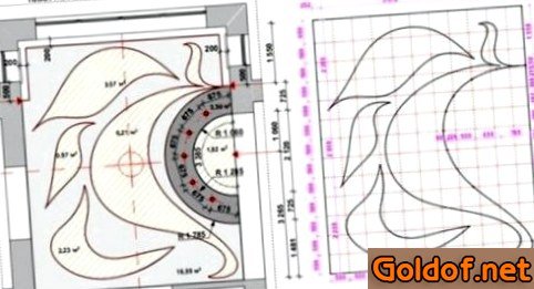 - Различные извивы и необычные формы гипсокартонного основания. Установка натяжного полотна в сложные формы довольно затруднителен и здесь не обойтись без правильных замеров. Для расчета некорректных фигур используются сложные технологии.