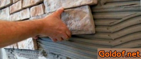 По окончании подсыхания грунтовки приступают к поклейке каменных плиток. Стены и камень смазывают клеем или веществом (довольно густо). С целью этого употребляется обычной плиточный клей. Камень придавливают к стене и держат, пока он не сцепится со стенкой. Укладку реализовывают разными способами: