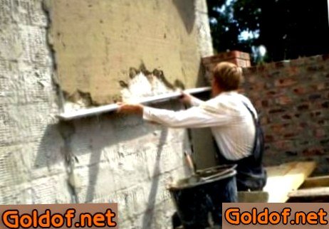 - Оштукатурив всю стене, необходимо оставить поверхность для комплекта прочности (около получаса), по окончании чего применяя длительное правило снять все неровности и сгладить выпуклости. Оказавшиеся ямки заполняются консистенцией повторно и снова разглаживаются правилом. Создавать выравнивание следует в особенности основательно. Толщина за один проход не должна быть больше 5 мм.