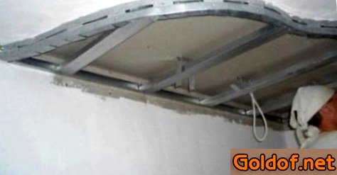 По отведённой полосы прикрепите U-образный профиль средством перфоратора и дюбелей. Таковой же профиль нужно установить на потолке по заранее проложенной разметке. Форма короба не уникальность прямой и криволинейной. Чтобы закрепить профиль по кривой полосы, его нужно надрезать ножницами по металлу, придерживаясь промежутка в 3-4 см, таким способом, чтобы вы имели возможность его выгнуть до подходящей кривизны.