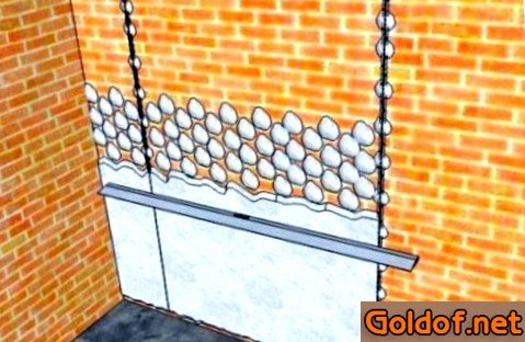 - На рабочий участок (с обеих сторон прилегающих стенок) наносится приготовленная смесь.