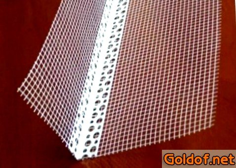 - Отрезок контрашульца прикладывается к углу и просто придавливается долгим правилом. Делать это нужно максимально заботливо ввиду его легкой деформации. Избытки раствора, проступившие через отверстия, удаляются шпателем (от угла в сторону, так, разглаживая сетку).