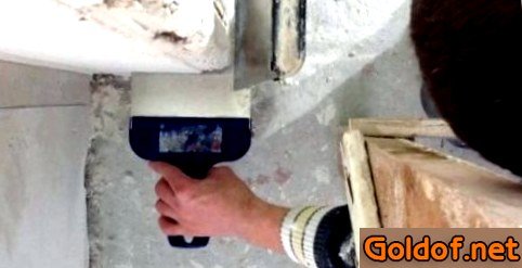 - Раствор в небольшом количестве нанести на стык стенок, захватив и по 10 см прилегающих поверхностей.