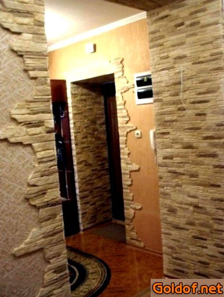 - Отделка стенок в прихожей камнем: пошаговое управление Облагораживание прихожей из камня – мероприятие, воплощение которого не представляет принципных сложностей, в связи с чем, оно полностью осуществимо своими руками. Но, перед тем, как приступить к отделке, необходимо выполнить ряд предварительных мероприятий, какие содержат в себе полное удаление ветхой штукатурки и чистку стенок от старых обоев. Кроме этого, важно заранее предугадать размещение проводки и выключателей, и выполнить выравнивание стенок, которое, в случае отсутствия необходимости в формировании арок, может проводиться средством шпаклевки.