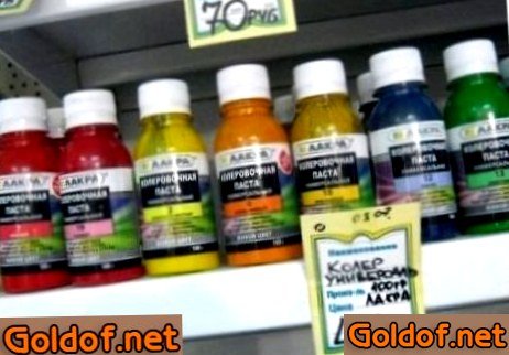 Цвета акриловых красок создаются средством особенных колеровочных паст на акриловой основе. Стоимость на их низкая, за баночку двести гр создает порядка 50 рублей. Количество пигмента рассчитывается персонально зависимо от подходящей интенсивности цвета.