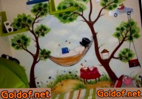 На данный момент можно приступать непосредственно к росписи стенок акриловой краской. Поначалу следует совершенно определиться с мыслью мотива для дизайна стены. После чего средством карандаша набросок переносится на стенку, линейно прорисовывая всю композицию. Готовый набросок раскрашивается акриловыми красками.