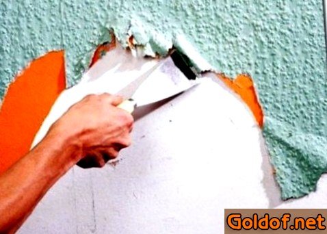 Если вы имеете дело с длинными отслоениями штукатурки, их необходимо сбрызнуть водой и удалить острым шпателем. В случае если необходимо удалить пятна сажи или жирные следы, смойте их водой с добавлением традиционных моющих средств.