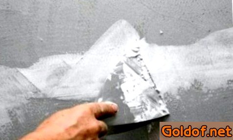С целью проведения шпатлевания понадобится широкий и узенький шпатели, и кюветка с плоским дном. Смесь консистенции должна быть такой, чтобы конус, образовывающийся от помешивания палочкой, сохранял форму. С течением времени шпатлевка загустевает, исходя из этого ее следует временами смешивать с водой или грунтовкой. Смесь подходящей смеси отлично держится в вертикальном положении, не соскальзывая со шпателя.