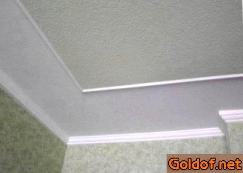 - Всецело заполнив потолочное место плитками, сделайте установка плинтусов, по окончании чего замажьте все соединения шпаклевкой.