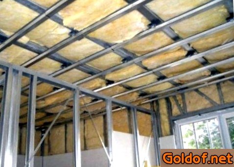 - ГКЛ крепиться на обрешетку (разработка идентична с строительством стенок из гипсокартона);