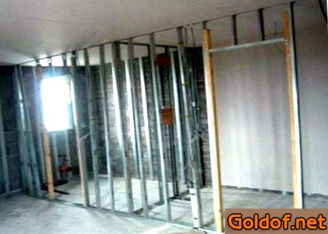 - Каркас стены. Производится из стальных профилей или деревянные рейки. В ближайшее время, все чаще предпочтение отдается металлическому каркасу – он считается более крепким, легкодоступным по стоимости и наименее чувствительным к наружным факторам (влажность, механические деяния). Металлический профиль выпускается хочет под гипсокартон.