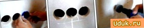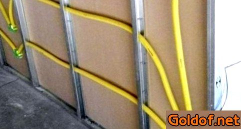 С целью проведения проводов в вертикальных профилях делаются отверстия поперечником 35 мм на подходящей высоте. Проводку нужно поместить в бугристые трубы, а потом завести в стене.