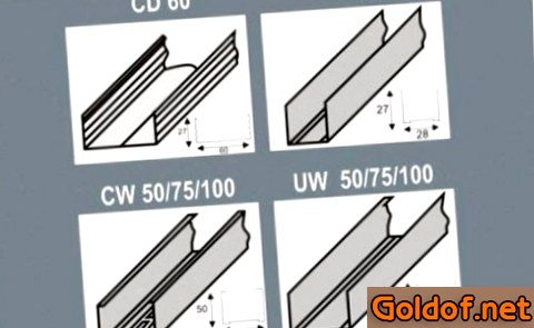 Направляющий профиль (UD, UW) – П-образной формы с гладкими стенами, опорный профиль (CD, CW) – также имеет П-образную форму, его стенки – ребристые.
