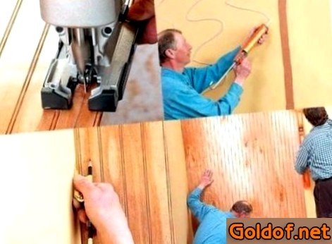 - Панель из дерева прикрепляем к каркасу гвоздями, а все другие как можно плотнее между собой, в обязательном порядке стыкуются в паз.