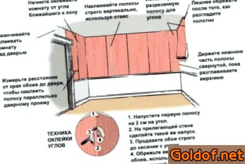 - 1-ая полоса обоев приклеивается от окна.