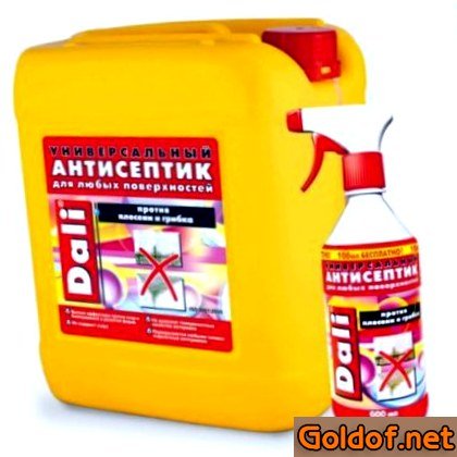 - Предназначается для удаления плесени на кухне, в подвалах, на балконах. Естественно подойдет для работы на улице. Это био антисептик надёжен, так как не содержит хлора. Стоимость банки 500 мл создает 250-300 руб.